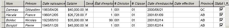 Dans cet exemple, les noms et prénoms sont figés alors vous pouvez vous déplacer vers la droite jusqu'au bout, sans jamais perdre de vue les noms des individus.
